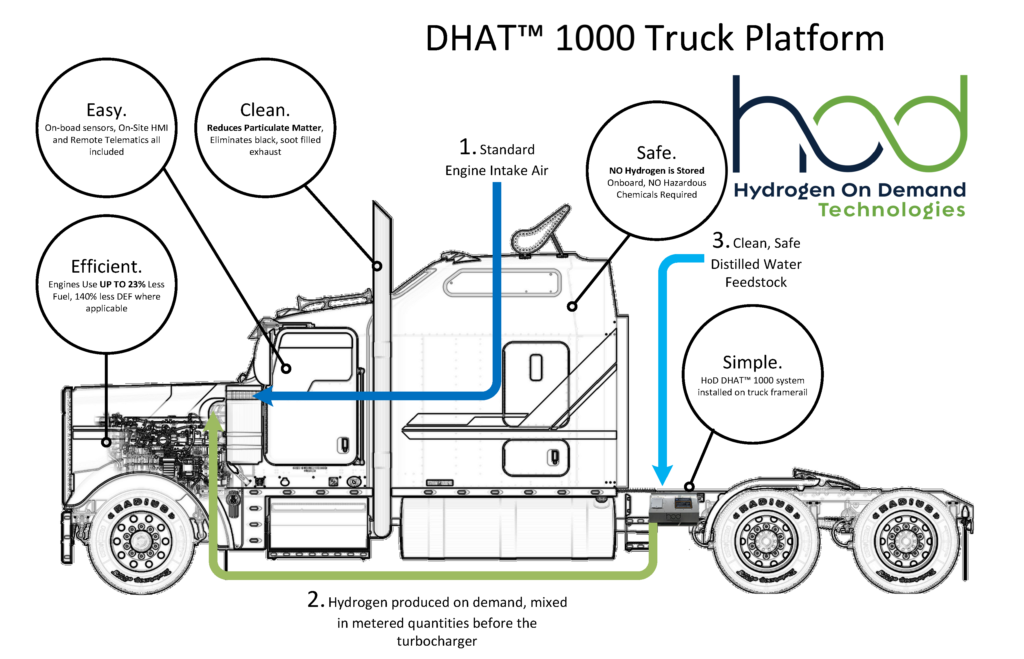 Hydrogen On Demand Technologies (HODT) is an early stage Silicon Valley-based original equipment manufacturer (OEM) which provides innovative hydrogen solutions to bring about a sensible transition towards clean energy, resulting in a bottom-line improvement today for diesel fleet operations and our planet.